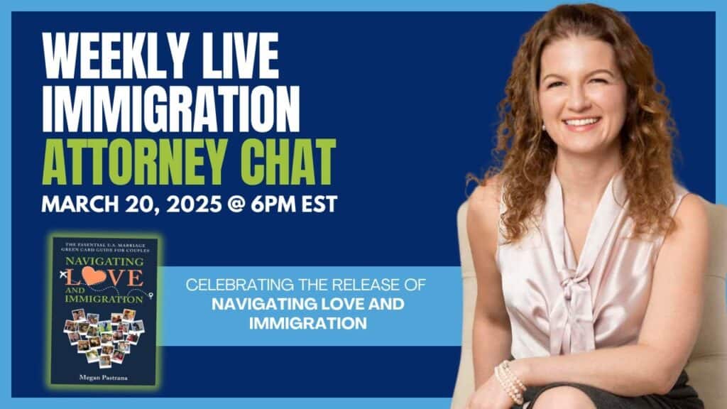 Have more questions about the U.S. immigration process for couples? Join Attorney Megan Pastrana and the team every Tuesday at 11 AM EST for our Weekly Live Immigration Attorney Chats. You can ask your questions live on YouTube, Facebook, Instagram, and LinkedIn, and get personalized guidance for your case.